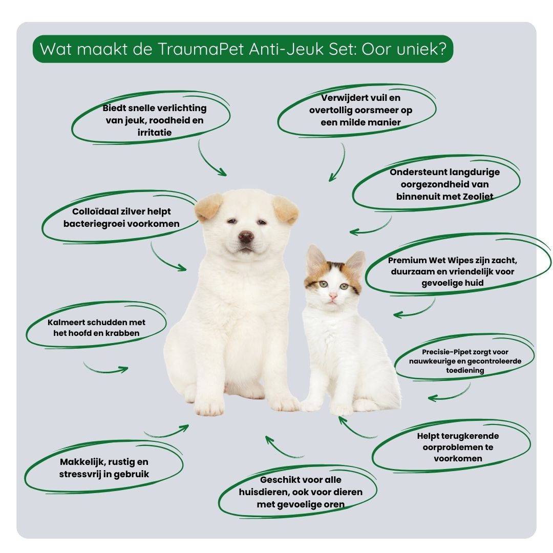 Bekend om zijn kalmerende en ontstekingsremmende werking; verzacht roodheid en irritatie rond de ogen, oren, pootjes en huid.